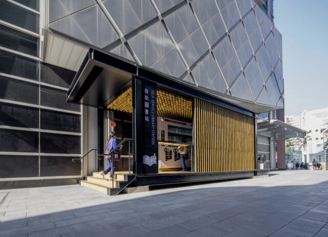 港島東自助圖書館站是香港特區政府 2016 年政策議程公佈的試點項目。它受到公眾的歡迎,並推動智慧城市的閱讀文化。建築設計具有吸引力、功能性和可持續性,以提高社區對新服務的關注。自助圖書館站的主要特徵是天然竹立面,並採用古竹簡形式為天花板的特徵,以呼應“書”的主題。竹材不易處理,給現場施工帶來巨大挑戰。