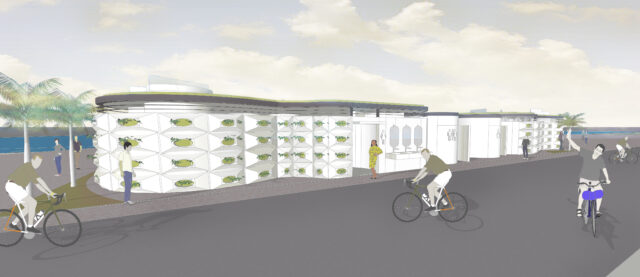 With its organic form, it facilitates better ground air ventilation. The IOT Sensors (Humidity and Temperature) can monitor the washroom environment and give immediate feedback to the users. This architecture also uses recyclable concrete, with the introduction of green roof to reduce indoor temperature.