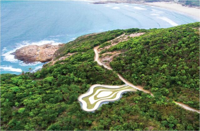 The design is inspired by nature and for admiring nature. The curved ergonomics stargazing profile not just resembles the dynamics of the scenic shoreline of Sai Kung. It is a comfortable spot for us to lie down and feel the beauty of the night sky at the middle of a country park trail. The light wood color with a touch of timber grain blends the design into Mother Nature. As a counterpart to the vivid city, the design is a window to unveil the natural side of Hong Kong to local and tourist hikers, provoking a rethink of the image of Hong Kong. The conscious organic necklace-form respects the existing vegetation line of abandoned campsite and achieves zero tree felling during its construction. You can sit down, look and dream on the stars when you walk pass the hiking trail.